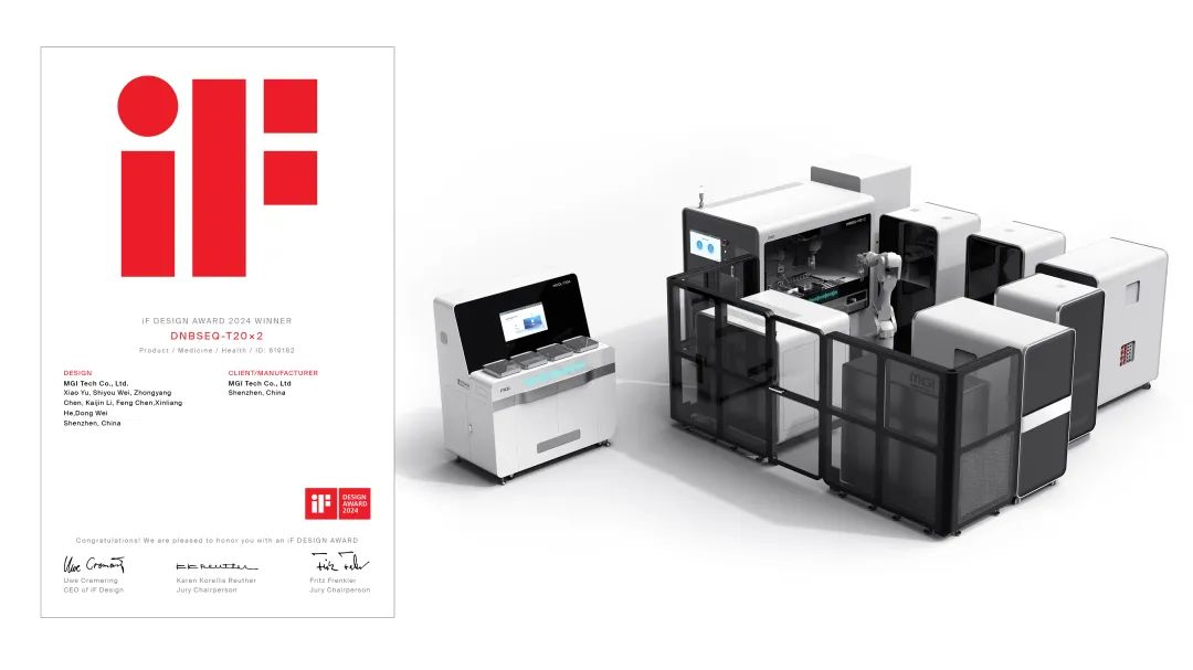 近日,全球最具影響力的設計類獎項之一“德國iF設計獎” (iF Design Award)公布了2024年度獲獎名單。華大智造超高通量測序儀(yi) DNBSEQ-T20×2(以下簡稱“T20”) 從(cong) 72個(ge) 國家的10807件參賽作品中脫穎而出,榮獲iF設計大獎。