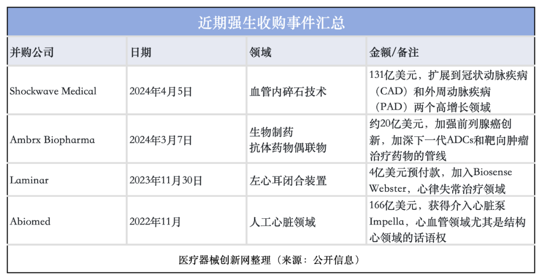 此次交易是繼2022年底收購微型心髒泵製造商Abiomed(一項166億美元的收購),以及23年以4億美元收購心髒植入物開發商Laminar(旨在降低患者因房顫引發的長期中風風險)之後的又一行動。