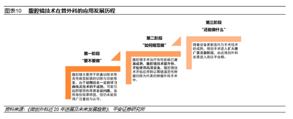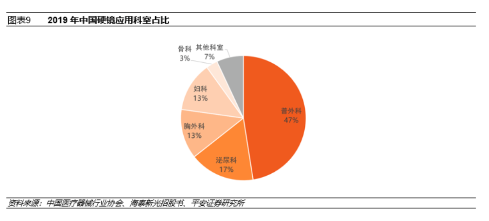 2019年,中國超過90%的微創手術應用於普外科、婦產科、泌尿外科、胸外科和骨科五個科室。這五個科室的手術,除流產手術或患者存在特殊身體狀況或特殊病變部位,大部分術式均適用微創手術。