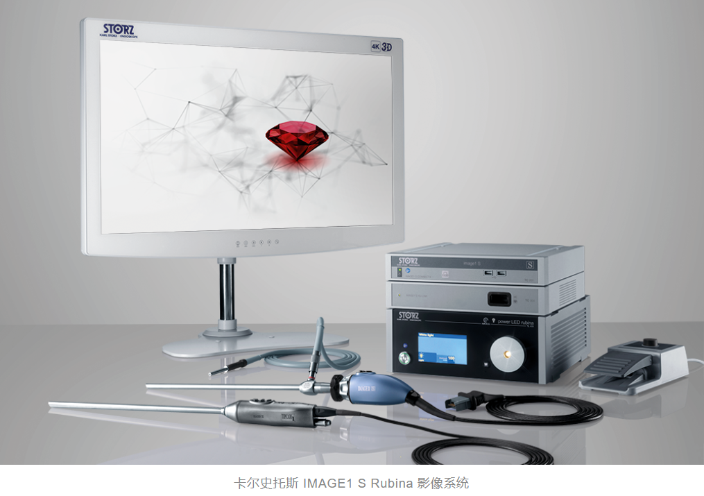 卡爾史托斯的IMAGE1 S Rubina影像係統是全球首款融合4K、3D、NIR(熒光)三重內窺鏡成像技術的產品,真正實現在一套主機和一根內窺鏡下的三種成像方式同時疊加使用。