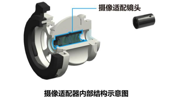 高清熒光攝像適配器/適配鏡頭 攝像適配器(又稱“適配器”)是內窺鏡攝像係統的核心部件之一,攝像適配 鏡頭是實現適配器圖像傳導功能的關鍵部件,作用是將內窺鏡所成圖像再次成像 到攝像頭的 CMOS 靶麵上。其構成示意圖如下: