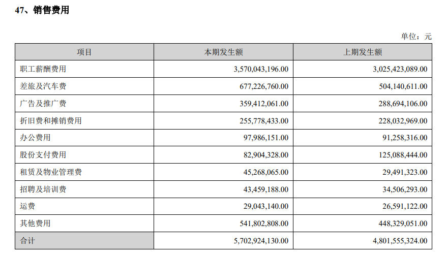 2022年,銷售薪酬28.75億元,銷售人數4071人,平均薪酬70.62萬/年。