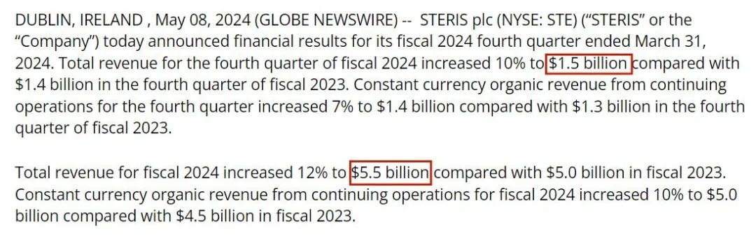 在昨日發布的盤後收益報告中,Steris宣布,截至2024年3月31日的第四季度,公司營收為14.19億美元,虧損100萬美元,每股虧損1美分。去年同期,Steris的營收為12.81億美元,利潤為1.87億美元,合每股1.89美元。
