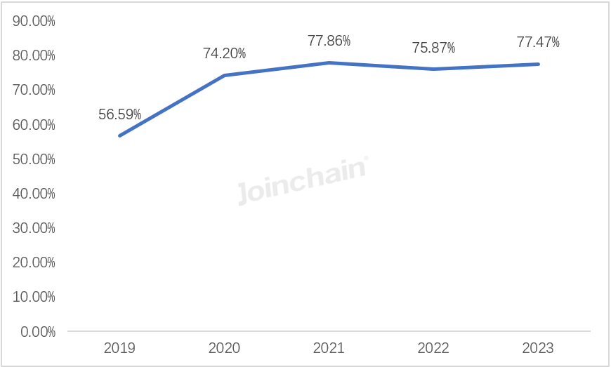 inkMacSystemFont, "Helvetica Neue", "Hiragino Sans GB", "Microsoft YaHei UI", "Microsoft YaHei", Arial, sans-serif; font-size: 17px; letter-spacing: 0.544px; text-indent: 0px; text-align: center; line-height: 1.75em; box-sizing: border-box !important; overflow-wrap: break-word !important;">2019-2023年口腔CBCT在牙科X射線機市場規模占比變化(%)