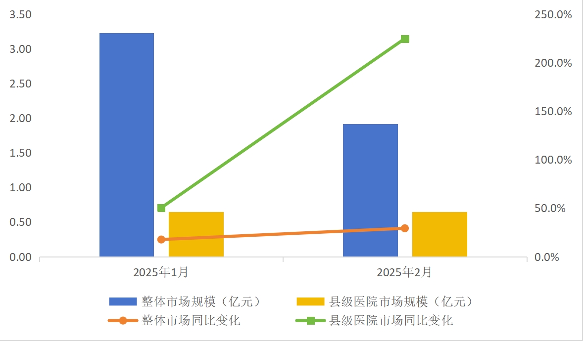 到了2025年,這股"抬頭"的力量更為(wei) 強勁。據眾(zhong) 成數科測算,2025年2月,國內(nei) 呼吸機整體(ti) 采購規模同比增長29.2%,縣域市場采購規模更加喜人,同比增長224.8%。